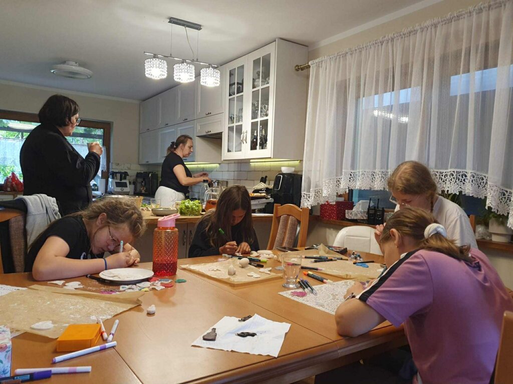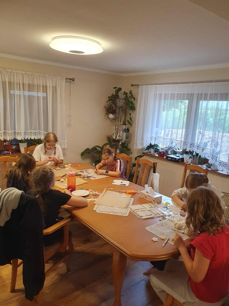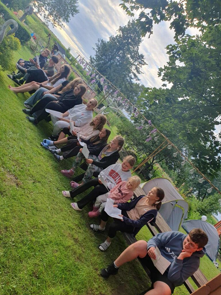 W dniach od 4-6 sierpnia schola parafialna uczestniczyła w biwaku, który odbywał się w gospodarstwie Państwa Wysockich w Czapiewicach. I chociaż pogoda nas nie rozpieszczała, to nie brakowało nam atrakcji. Spacery po najbliższej okolicy, warsztaty śpiewu przeprowadzone przez panią Patrycję (dziękujemy serdecznie), ognisko, zabawy na świeżym powietrzu i kąpiele w basenie co odważniejszych. Były warsztaty robienia breloczków z masy plastycznej, a także malowanie kamieni – serdecznie dziękujemy pani Magdzie za przygotowanie i przeprowadzenie zajęć. Kiedy padało graliśmy w gry towarzyskie, a rywalizacja była niezwykle zacięta. 😊😊 Bardzo przyjemnie upłynął nam czas na wspólnej integracji.