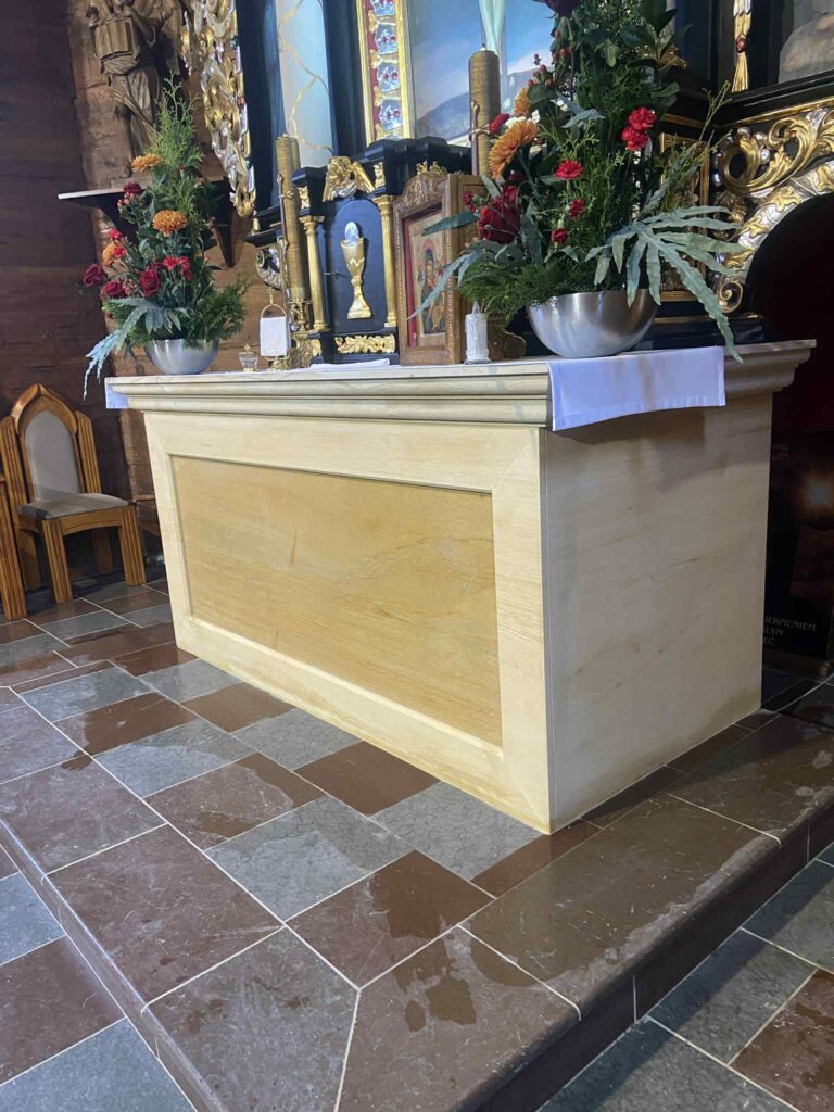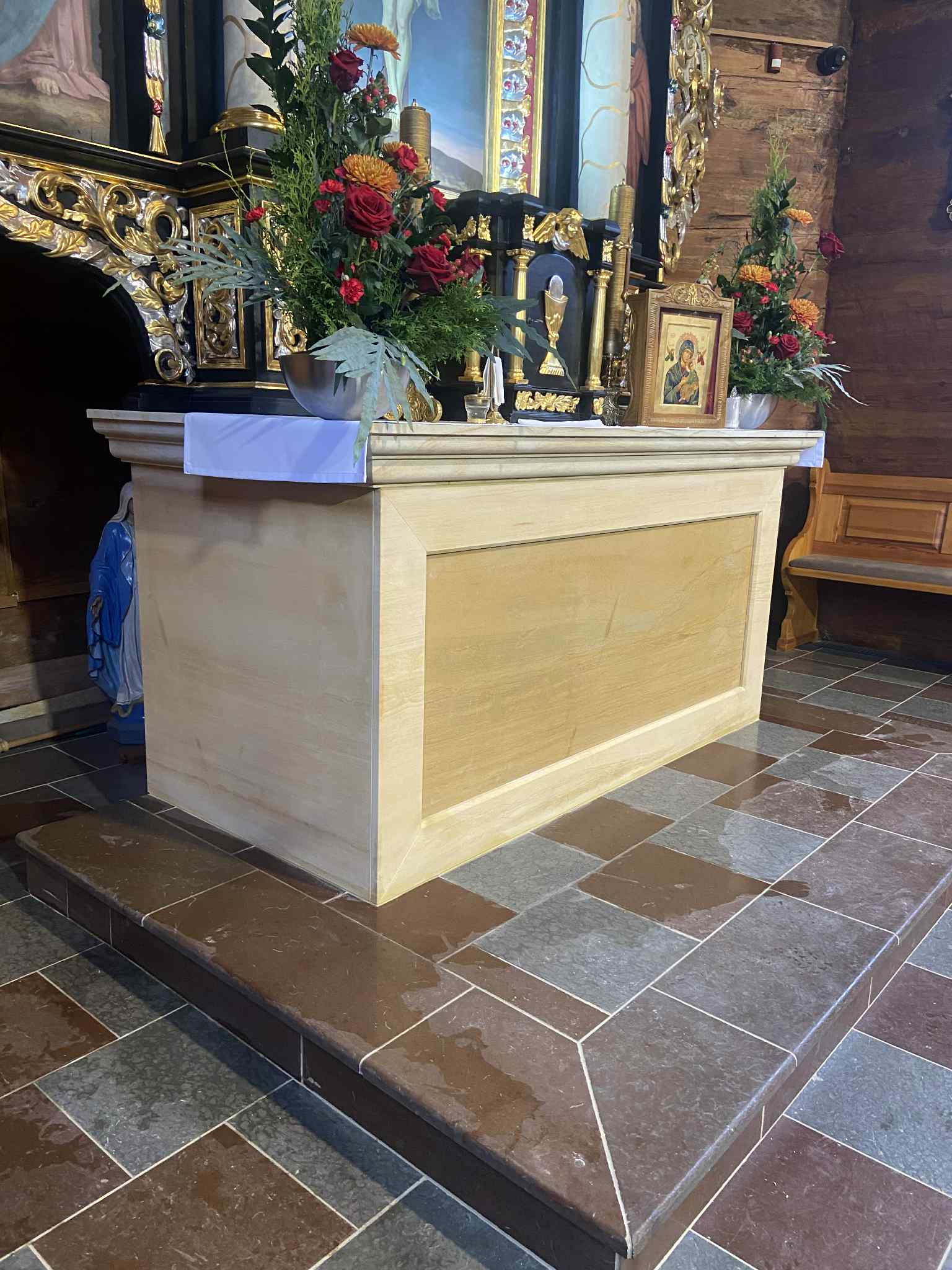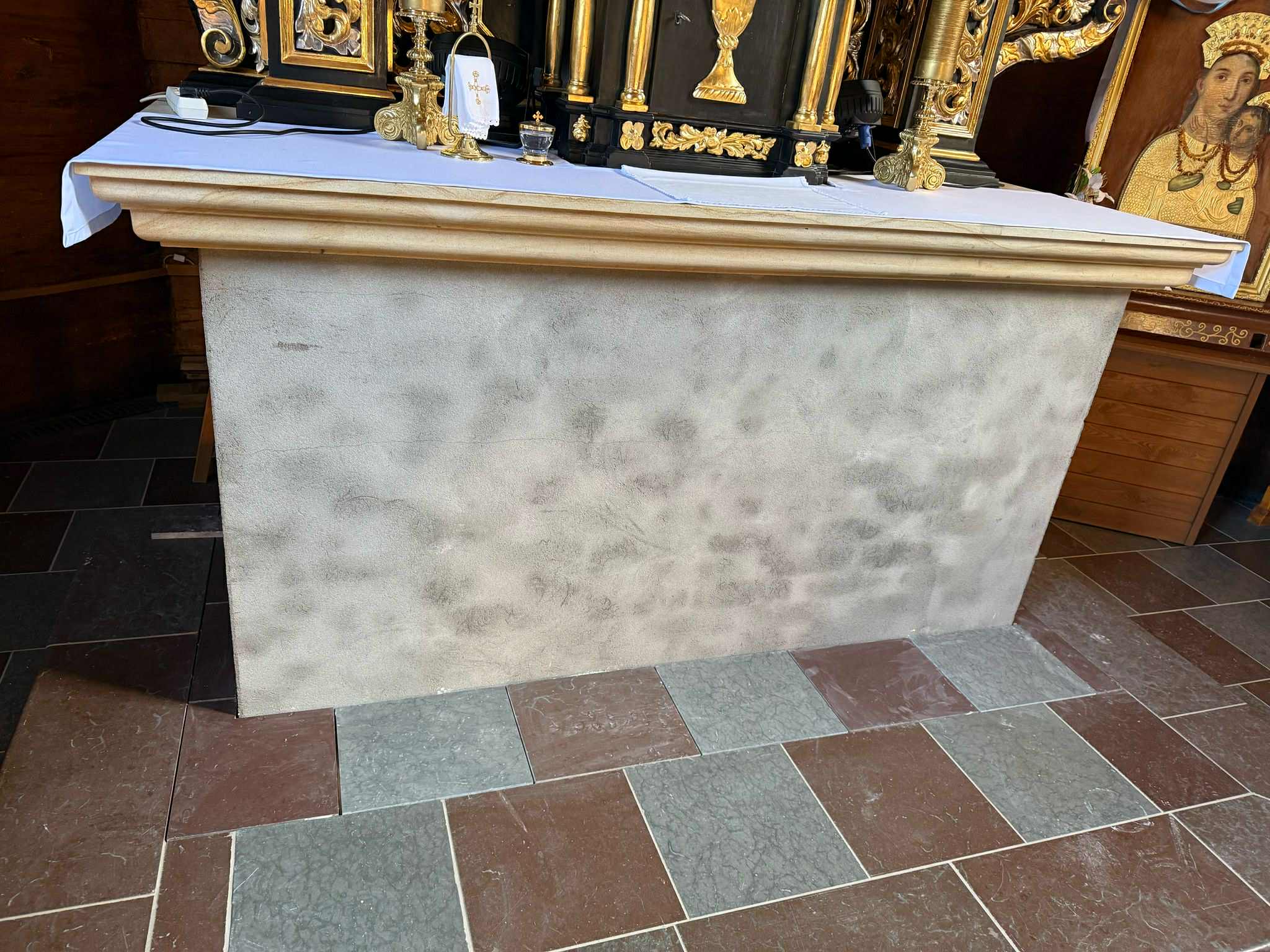 W naszym kościele parafialnym zakończono renowację ołtarza głównego. 17.11.2025 roku wykończono piaskowcem postument pod mensą ołtarza. Pracę wykonała firma pana Mateusza Trawickiego, a nadzór konserwatorski miała nad pracą pani Agnieszka Przepióra. Bardzo dziękujemy, że ołtarz jawi sie już w pełnej krasie.