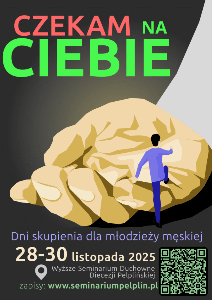 Wyższe Seminarium Duchowne Diecezji Pelplińskiej zaprasza młodzież męską do udziału w dniach skupienia, które odbędą się w terminie od 28 do 30 listopada 2025 roku w gmachu WSD. Ta forma skupienia ma być pomocą dla młodych (uczniów szkół średnich, maturzystów i studentów) w rozeznaniu ich drogi życiowej. Udział w weekendowym skupieniu jest bezpłatny. Uczestnicy są proszeni o zabranie z sobą Pisma Świętego.