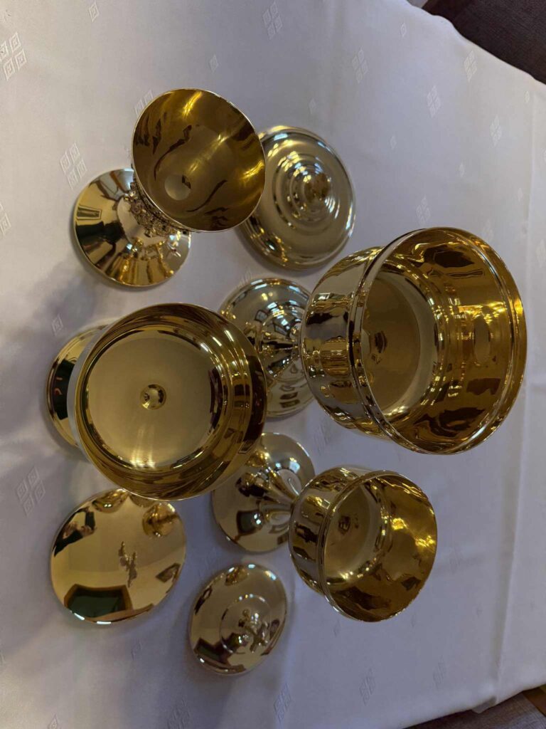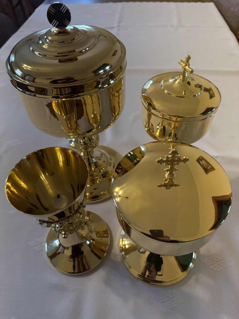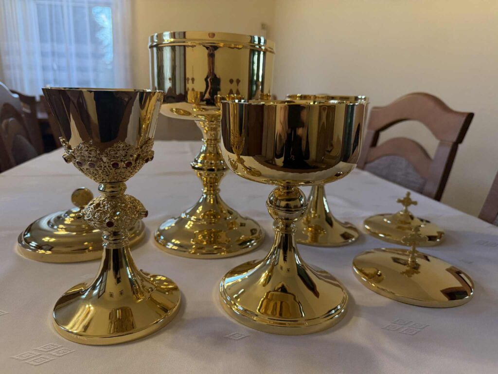 Po dwóch miesiącach wróciły do parafii naczynia liturgiczne, które zostały poddane konserwacji i nowemu złoceniu. Renowację naczyń przeprowadził Zakład Brązowniczy Bielińscy z Poznania. Bardzo serdecznie dziękujemy za pięknie wykonaną pracę.