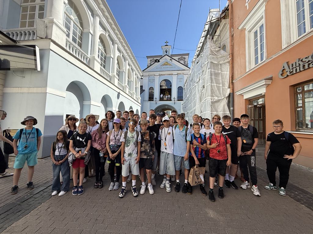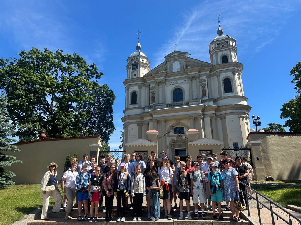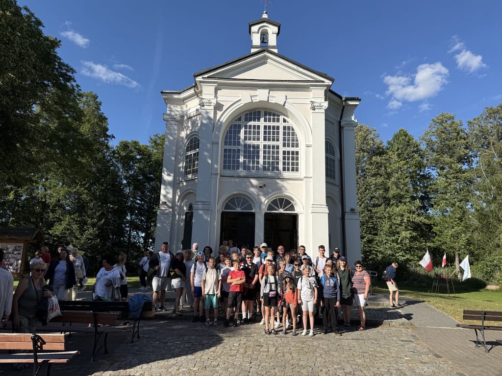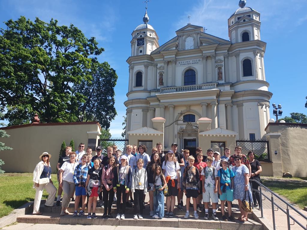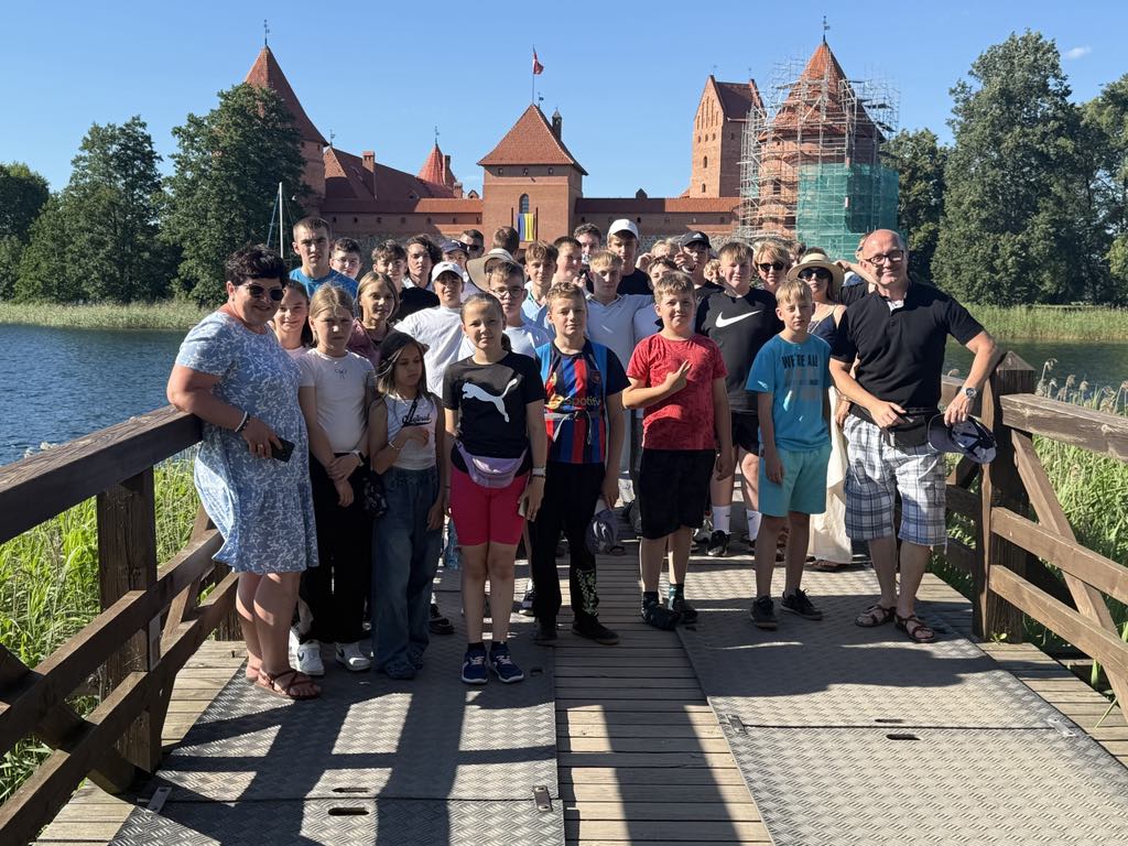Wyprawę zaczęliśmy 30 czerwca 2025 roku. Zanim dojechaliśmy do Sejn odwiedziliśmy miejscowość Święta Lipka z przepięknymi organami. Po drodze wjechaliśmy do dawnej kwatery Hitlera „Wilczy Szaniec”. Następnego dnia zwiedziliśmy bazylikę w Sejnach i klasztor podominikański. Później pojechaliśmy do Augustowa, gdzie po zwiedzeniu miasta popłynęliśmy kanałem augustowskim. Na koniec pomodliliśmy się w sanktuarium Maryjnym w Studzienniczej. Trzeci dzień wyprawy to wyjazd na Litwę i zwiedzanie Wilna i Troków. Zobaczyliśmy piękne miejsca. Największe wrażenie wywarła na nas msza święta sprawowana w Ostrej Bramie. Odmówiliśmy tam koronkę do Miłosierdzia Bożego i każdy miał możliwość pomodlić się przed cudownym obrazem. Następnie udaliśmy się na cmentarz „Na Rosie”, gdzie spoczywają polscy żołnierze, serce marszałka Józefa Piłsudskiego i wielu wybitnych Polaków. Zwieńczeniem dnia było obejrzenie pięknego zamku w Trokach. Ostatni dzień to wyjazd do domu z fajnym relaksem w basenach w Mikołajkach. Pełni wrażeń wracamy do domu i dziękujemy Wszystkim, którzy w jakikolwiek sposób przyczynili się do naszej wycieczki.