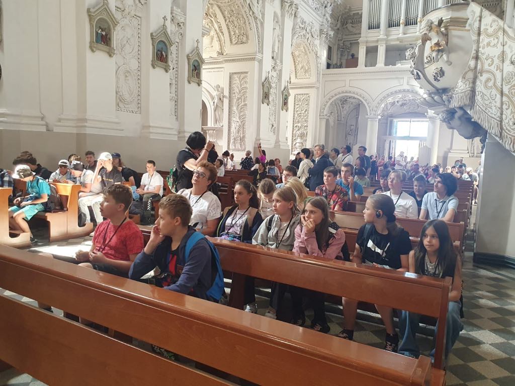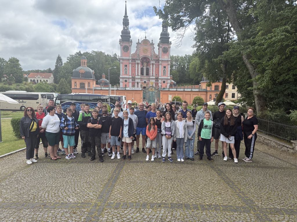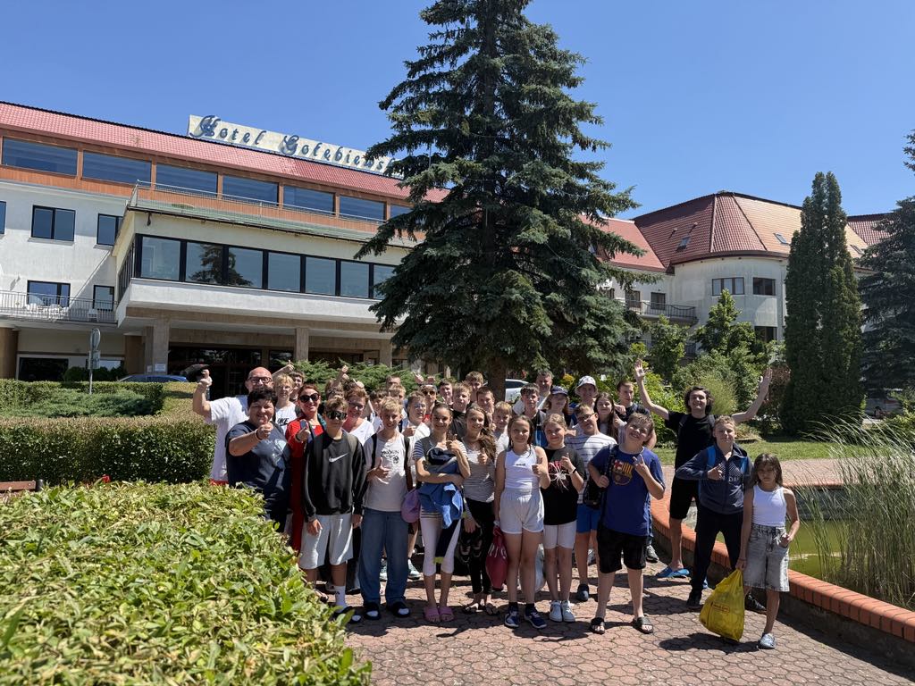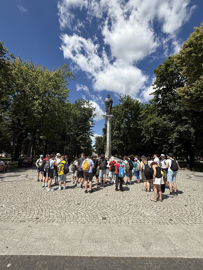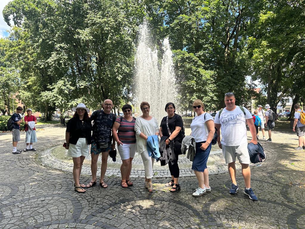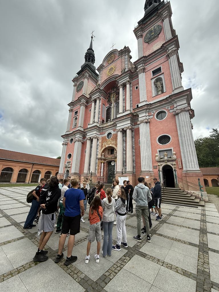 Wyprawę zaczęliśmy 30 czerwca 2025 roku. Zanim dojechaliśmy do Sejn odwiedziliśmy miejscowość Święta Lipka z przepięknymi organami. Po drodze wjechaliśmy do dawnej kwatery Hitlera „Wilczy Szaniec”. Następnego dnia zwiedziliśmy bazylikę w Sejnach i klasztor podominikański. Później pojechaliśmy do Augustowa, gdzie po zwiedzeniu miasta popłynęliśmy kanałem augustowskim. Na koniec pomodliliśmy się w sanktuarium Maryjnym w Studzienniczej. Trzeci dzień wyprawy to wyjazd na Litwę i zwiedzanie Wilna i Troków. Zobaczyliśmy piękne miejsca. Największe wrażenie wywarła na nas msza święta sprawowana w Ostrej Bramie. Odmówiliśmy tam koronkę do Miłosierdzia Bożego i każdy miał możliwość pomodlić się przed cudownym obrazem. Następnie udaliśmy się na cmentarz „Na Rosie”, gdzie spoczywają polscy żołnierze, serce marszałka Józefa Piłsudskiego i wielu wybitnych Polaków. Zwieńczeniem dnia było obejrzenie pięknego zamku w Trokach. Ostatni dzień to wyjazd do domu z fajnym relaksem w basenach w Mikołajkach. Pełni wrażeń wracamy do domu i dziękujemy Wszystkim, którzy w jakikolwiek sposób przyczynili się do naszej wycieczki.